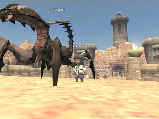 日曜日の午後でPCが多いならともかく、NPC多すぎです^^;Nyumomo:元老院警備隊長Gariri:天蝎戦闘魔道師団長Kayeel-Payeel:宝瓶戦闘魔道師団長スカウトされたらしくDuskraven殿にAzimaさんもいらっしゃいます。爆弾おいていく神速団のヤグが、瞬殺されてました^^;Pyaとkyoの二匹の大鳥に加えて、サソリのVahiと蜘蛛のAzoは誰が連れてきたんですか!?他が手薄じゃないの^^取り敢えず、記念撮影とかさせて貰いましたとも^^追加画像です。サソリのVahiと蜘蛛のAzoを連れてきているはずのChohMouiさんとの2ショットは実現せず以下は、その他の方々^^;作戦会議のスカウトNPC達