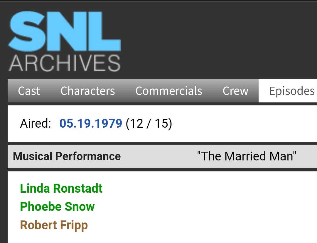 以前より、フリップとリンダ・ロンシュタット、フィービ・スノウの写るサタデーナイトライブの写真がありましたが、放映された番組は不明でした。