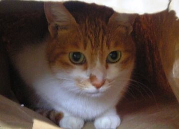 今日は、年末に予約してあったヘモバルトネア症の検査結果を聞きに病院へ行って来ました。やはりヘモバルトネア症に感染していました。感染原因は、喧嘩などによる咬傷が有力な原因と考えられ一般的な症状として、感染初期に高熱が出たり動作が遅くなったり動かなくなったり、食欲消失・呼吸速迫等が見られる。治療としては、周期的に血液中に出現するので本症が疑われる場合はには数日間検査をして抗生物質を投与することが必要だそうです。100%血液中からヘモバルトネア菌がなくならないので一生付き合っていかなければならないそうです。チョロちゃんの場合は、よく喧嘩をして返り血を浴びて帰ってきてましたので、そこから感染したものと思われます。ストレスが溜まると菌が増殖するので、チョロちゃんにストレスを与えないようにしなければならないですね。本日のチョロちゃんで紙袋の中に入っています。 猫って箱とか袋が好きで必ずといっていいほど入りますね。