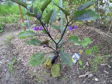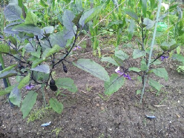 今日は天気予報どおり一日中、雨が降ったり止んだりしていました。明日も今日と同じような天気の一日となりそうです。昨日、畑でナスビの観察をしていると、かなり生長に差があるのが分かりました。3本の内、1本は枯れたために追加で植付けたものです。左のナスビよりも右のナスビの方が小さいのが分かると思います。右のナスビは初生りをそのままにしていたために小さいものと思われます。右のナスビは菜園仲間のYさんに苗を頂き、追加で植付けたものです。時期が時期だけにかなりの生長スピードです。後、花の状態を見ると、雄しべよりも雌しべの方が長く、栄養状態もいいようです。今年も昨年のように豊作になると嬉しいのですが、さてどうなるでしょうかねぇ。