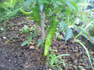今日の午前中はどんよりとした曇り空でしたが、昼からは晴れ間も出てかなり暑い一日でした。今年はピーマンを摘芯一本仕立てで育ててみようかと考えています。通常、ピーマンや唐辛子は2本に分岐しますが、強い枝を伸ばし弱い方の枝を側枝にするそうです。2本に分岐した勢いのいい枝を残して、弱いほうを摘芯しました。何となくは理解しているのですが、理解力のない私ですから果たして上手く行くか見ものです。