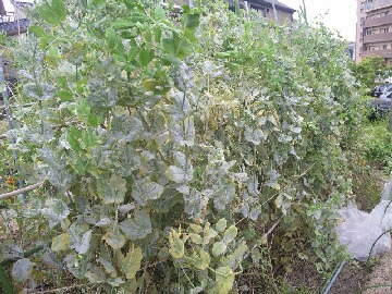 6日ぶりの更新となります。6日間は風邪でくたばっており、あまりの辛さで更新する気にもなりませんでした。ようやく風邪も回復し始めたのですが、まだ味覚が殆どありません。ですから何を食べても美味しくないんですよねぇ。今年はスナップエンドウはファーマー家と我が家だけでは食べきれないくらいの豊作でした。そのスナップエンドウも終わり、エンドウ全体がうどん粉病にかかっています。このまま放置していると、周りに迷惑をかけるので、撤去しました。エンドウがなくなると、何かスッキリとしました。この跡地には下仁田ネギを植付ける予定です。それとナスビの一番果を収穫しました。早めに収穫しなかったせいか、隣のナスビの木よりも一回り小さいです。やはり、栄養分が実にいってしまうようです。