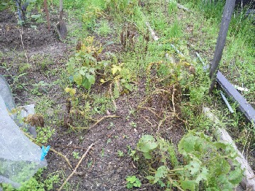 今朝の天気予報では日中に雨の予報になっていましたが、朝のうちにパラパラっとお湿りにもならない程度の雨が降りました。昨日よりも気温が低かったので、蒸し暑さは感じませんでした。トウ立ちしたダイコンの後に種を蒔いた青梗菜が発芽していました。青梗菜は簡単に作ることが出来るので、何を作ろうかと悩んだ時には最適です。同じ畝に植付けたキャベツですが、ネットをしているにもかかわらず、悲惨な状態になっていました。一体何処から進入したのか?見た感じでは、かなり奥まで侵入しているようです。やはり、この時期のキャベツは虫対策が難しいですね。畑のキャベツよりも先日アップした木枠のキャベツの方が虫食いもなく綺麗だし、大きさも一回り大きいです。