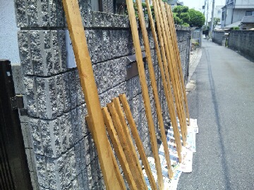 本日は朝からどんよりとした曇り空で、夕方には雨が降り出しました。今夜から明日の未明にかけては大雨になるような予報になっています。また明日からの週末は畑に行くことが出来ないようです。以前購入したインパクトドライバーを使いたくって、実家のベランダ用にスノコを作りました。ベランダ全面にスノコを敷きたいのですが、まだ半分しか出来ていません。残りは何時になるか分かりませんが、作る予定です。木の保護材のニスを塗って、1時間ほど乾かせているところです。長さ1.8m×幅1.1mのスノコです。完成したのはいいのですが、重たいのと狭いのとで2階のベランダに上げるのに一苦労でしたよ。残りの長さ1.3m×幅1.1mですが、一体何時になったら完成するのか・・・・。