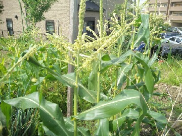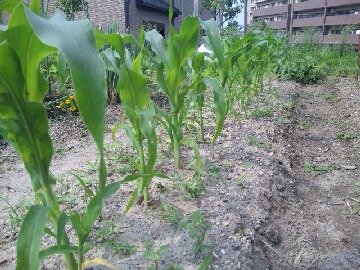 本日の午前中は曇っていて、暑さも多少はマシでしたが、昼からは晴れてきて蒸し暑さもMAX状態でした。今夜から天候は崩れてきて、明日は一日中雨の予報になっています。暫く雨が降っていなかったので、恵みの雨となりそうです。6月17日の日記にアップしたトウモロコシもいい感じに生長してきています。このままカラスの被害などに遭わず無事収穫をすることができるかのか分かりませんが、凄く楽しみです。