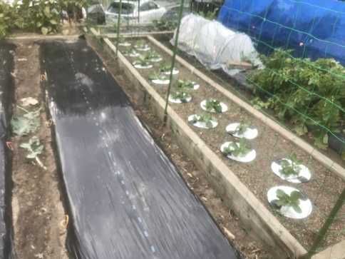 隣の区画との境界に防草シートを敷き詰めました。野菜を植付けると境界の雑草の手入れがかなりやりにくいんですよね。今回、防草シートを敷き詰めてどの程度効果があるか分かりませんが少しは手入れが楽になってくれたらいいなって思っています。