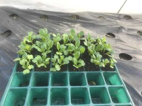 ここ数日は、朝は気温が下がり寒いですけど日中はポカポカと暖かい日が続いています。本日は夕方から雨の予報。今回の雨はしっかりと降るようです。1弾の小松菜の苗を植付けましたので、ずらし栽培のため第2弾の種蒔きを行いました。一か所につき2粒ずつ18カ所に種蒔きをしています。覆土をした後に潅水をして温室の中へセット。 裏書を見ると1~2月でもトンネル栽培だと問題ないようです。