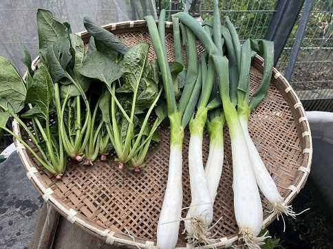 16日にお裾分け用として野菜を収穫しましたが、自宅用のホウレン草とネギがないという事で収穫をしてきました。前回収穫した九条太よりも白い部分が短いのは土のみで土寄せをしたものです。土のみで土寄せした物でも十分白い部分が確保できているので上等です。