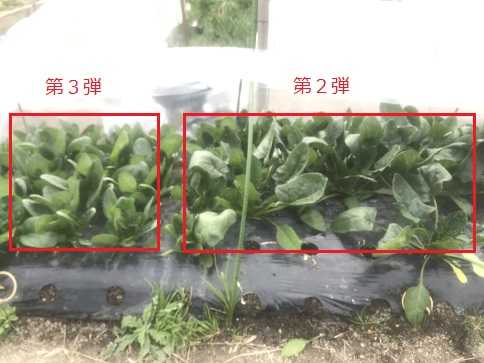 昨年は何度も種蒔きをやり直して調子が良くなかったホウレン草ですが、今季は絶好調です。現在、第2弾のホウレン草の収穫しており、第3弾ももう少しで収穫が出来そうな状況。第4弾も先日植付けましたが、どうやら無事に活着したようです。第3弾は1月末くらいから収穫が出来そうですし、第4弾は2月下旬には収穫が出来るのではないかと思っています。第5弾は種蒔きして間もないので今の所変化ナシです。
