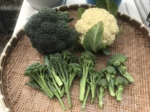 今回の寒波は最強寒波の名に恥じぬほどでした。雪のピークは過ぎたようですが今朝も氷点下です。私は寒さには強い方だと思いますが、今回はとにかく寒いです。カリフラワーとブロッコリー、側花蕾、スティックの収穫を行いました。カリフラワーについてはこれで最後の収穫のはずだったのですが、ふと見ると根元から茎が二股に・・・そこには小さなカリフラワーが生っていました。なんか得した気分です。(笑)このカリフラワーを収穫した後には撤去する予定です。ブロッコリーとスティックブロッコリーについては側花蕾の収穫を春先まで行う予定です。