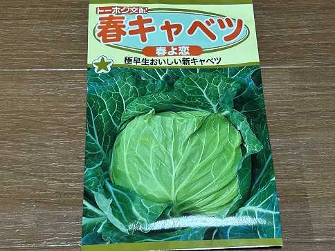 先日、春キャベツ(春よ恋)をHCで購入しました。個人的にフワッとした春キャベツが好きなので、この『春よ恋』という品種に・・・種蒔きの時期としては9月中旬からになっているので、種蒔きはもう少し後になってからになります。