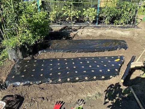 スイカの跡地に秋冬野菜用の畝にマルチを張りました。この場所には、ホウレン草等の葉物野菜とブロッコリー、スティック、キャベツなどを考えています。今年は秋ジャガ、タマネギを作るのを止めようと思っているので、畝に多少なりとも余裕が出来そうです。