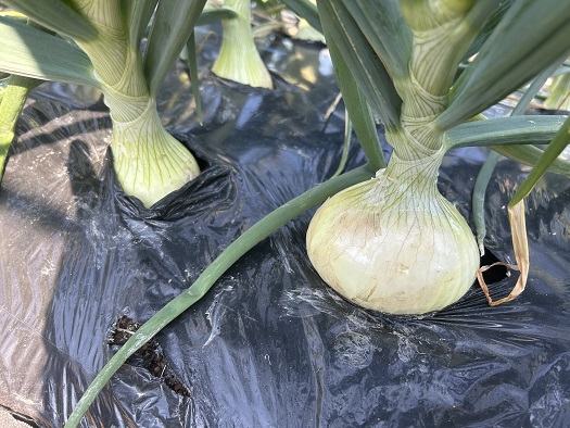 昨日の日中は春を思わせるような暖かな一日でした。本日は、昨日よりも更に暖かくなるようです。生長が遅れていたため、ビニールトンネルで保温することで生長を促していたタマネギですが、もう十分周りの区画のタマネギと比較しても遜色ないので外すことに・・・。一気にトンネルを外すことで、タマネギに何か影響があるといけないので、まずは裾を開けて気温に慣らすことにしています。3日後にビニールトンネルを撤去。トンネル内で、かなり窮屈そうにしていたので、先端が総て曲がってしまっています。まぁ数日もすればピンとしてくるでしょう。極早生と超極早生を作っていますが、何故か極早生の一株だけが大きく生長。