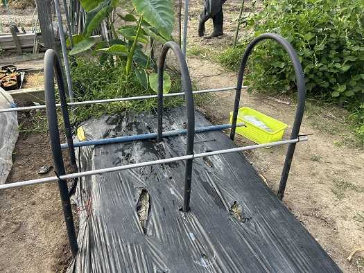 9月7日に耕運したスイカの跡地の畝上げにマルチ張りを行いました。畝上げにをする前に水遣りや雑草の手入れをしたので、畝上げをする頃には、もうクタクタ。これで4畝の耕運、畝上げが終了。何処に何を植付けるのかは未定です。