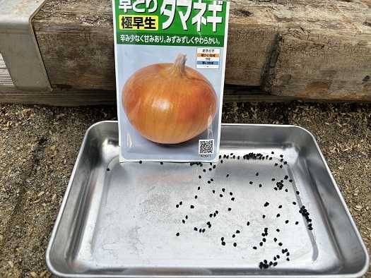 私の住む地域のタマネギの種蒔きは9月中旬からなのですが、少し早いと思いながらも数日前に種蒔きを行いました。木枠に川砂を入れて均しスジを入れて種蒔きをしています。昨年の残り種を使用。昨年の種なので、発芽率は50%もあれば十分です。ピンセットで2センチ間隔で一列に20粒ずつの種蒔き。乾燥防止のためにもみ殻を敷き詰めています。