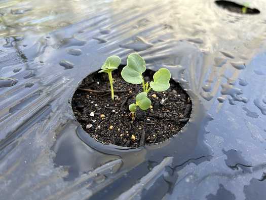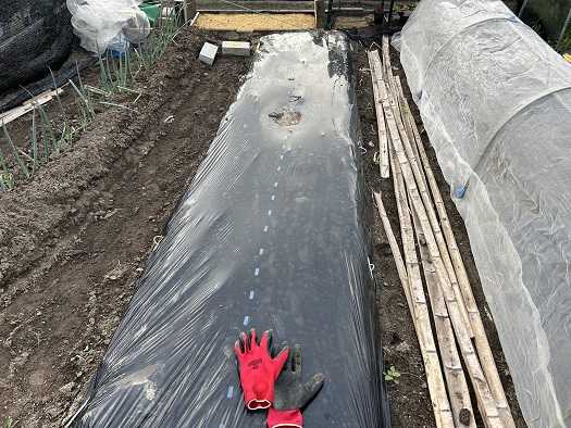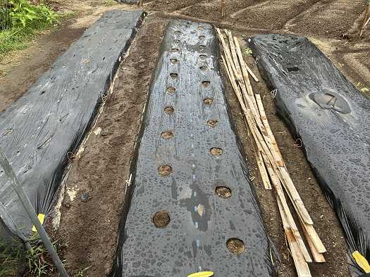今年はダイコンの種蒔きを遅らせようかと思っていましたが、皆さんのブログを見ていると種蒔きをされているので、我慢できずに種蒔きをしてしまいました。今年も加賀野菜の源助ダイコンを蒔いています。昨年の残り種ではありますが、まぁ大丈夫だと思います。マルチに30センチ間隔で千鳥に穴を開けています。まずは半分だけに種を蒔いて時差で作ることに。一か所につき3~4粒ずつの種を蒔いています。種に問題が無ければ3日程で発芽してくれることでしょう。