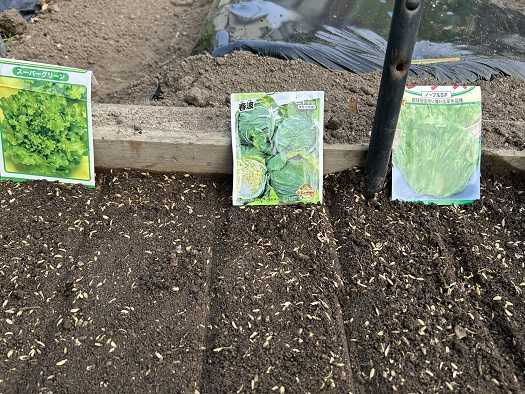 ブロッコリー類にサニーレタスをポット上げしたので、第2弾の種蒔きとして、キャベツ・玉レタス・リーフレタスの種蒔きを行いました。何時ものように水撒き時に泥はねをしないように籾殻を敷き詰めています。4日もあれば無事に発芽してくれると思います。