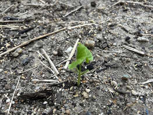9月20日に報告しましたダイコンが発芽してくれました。発芽率は悪く、10カ所に蒔いて発芽したのは5カ所のみ。追加で種蒔きをしています。第2弾の種蒔きは、第1弾のダイコンを間引きする頃に予定しています。
