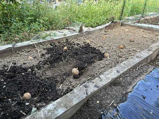 今朝の最低気温は24度と久しぶりに熱帯夜から解放されました。今週末から来週にかけては、最高気温も30度を切る日もあるようで過ごし易くなりそうです。当初、秋ジャガは作らない予定でしたが、秋冬野菜の植付け場所の確認をしていると木枠に空きが出ることが分かったので、急遽秋ジャガを植付けることにしました。今回の種芋は、小屋の中で保管していたクズ芋のインカのめざめを植付けています。インカは秋じゃがにはむかないのですが、少しでも収穫が出来ればと思い植付けてみました。今回植付けた種芋は、全部で13個です。収穫はクリスマス前後を予定。