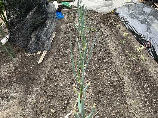 イマイチ生長の悪い我が家の長ネギです。今の時期にこんなに細くって大丈夫かなって気がします。化成肥料を施肥した後に軽く土寄せをしておきました。ダイコンの種を蒔いたのですが、防虫ネットをするのを忘れていたので設置しておきました。ダイコン畝の左側にはブロッコリー類を植付け、右側にはタマネギを植付ける予定です。