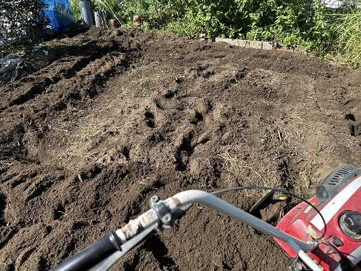 畑の作業も終わり休憩していると、菜園仲間のIさんが来られ区画の片づけと耕運を手伝ってほしいとのこと。まぁ自分のところの作業は終わっていたので手伝うことに・・・しかし、途中で気分が悪いとIさんがリタイア‼あまりの体力の無さに・・・流石に畝上げは後日ということで終了。