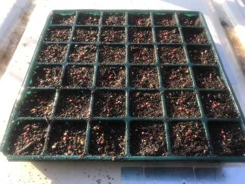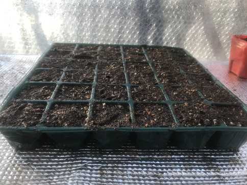 6×6の少し大きめのトレイに3粒ずつ種蒔きをしています。
