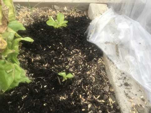 サラダ菜なんて種蒔きから3カ月、サラダ京水菜は2カ月ほど経過しているのに大きく生長していません。雨ざらしで寒い中ほったらかしにしていたので生長がストップしているようです。