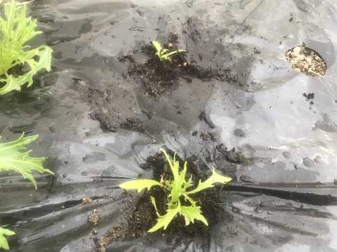 サラダ菜を10月10日に種蒔き、サラダ京水菜を11月1日に種蒔きしましたが、遅れて発芽したサラダ菜にサラダ京水菜の苗があったので植付けてみました。
