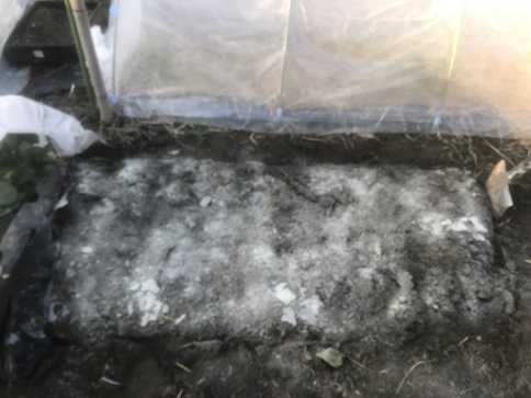 マルチを捲るとトンネルをしているにも拘らずマルチの下は氷が・・・。