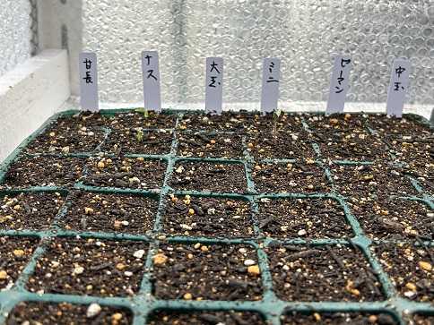 2月19日に種蒔きした夏野菜ですが、漸く一部が発芽してくれました。発芽したのは甘長唐辛子1/6ヵ所、ナスビ2/6ヵ所、ミニトマト1/6ヵ所からです。すべての種が発芽するのには、まだまだ時間がかかりそうです。