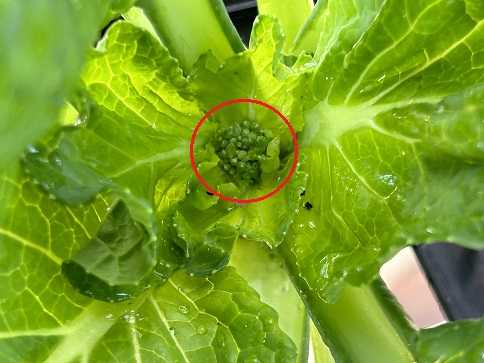 本日の収穫です。第1弾の小松菜がトウ立ちし始めました。
