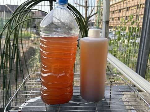 温室内で保管している光合成細菌のその後ですが、赤くなってきたというよりかは茶色くなってきた?もしかして失敗かな。もうしばらく様子を見ることにします。