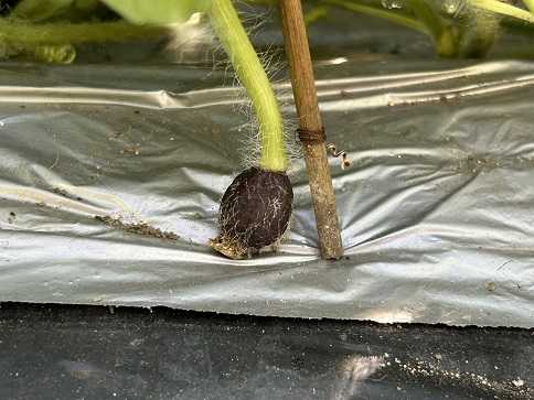 数日前に人工授粉させたものですが、こちらも茶色く変色してダメになるんでしょうね。