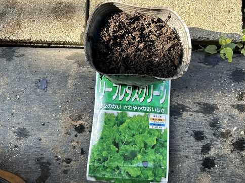 少し前にブロッコリーにスティックと種を蒔きましたが、そろそろ葉物野菜の種蒔きをすることに。今回は、サラダ菜とリーフレタスの種を蒔いています。