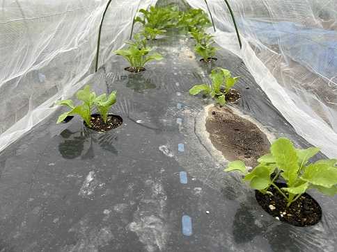 キャベツにビニールトンネル