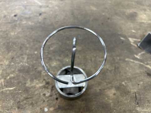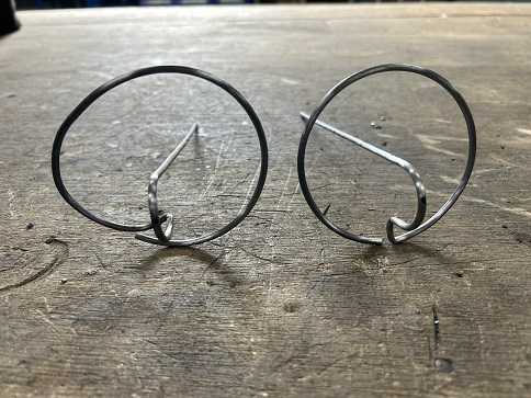 この治具を作るまではピンがセンターに来ないこともあって、後で調整するので微妙に輪っかが歪になっていました。左が治具を使わず作ったピンで、右が治具で作ったピンです。その違いが分かると思います。正直なところ見てくれだけなんですけど、でも見てくれも大事ですからね。(笑)