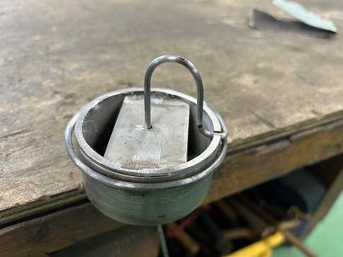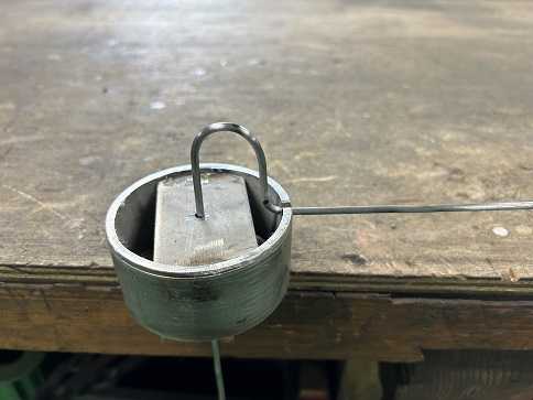 番線をU字に曲げ、直角に曲げた番線を穴に差し込みます。穴に差し込むことでセンターに固定。