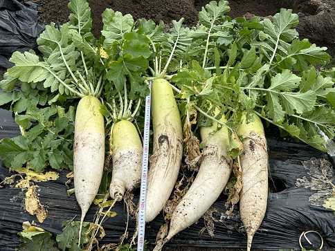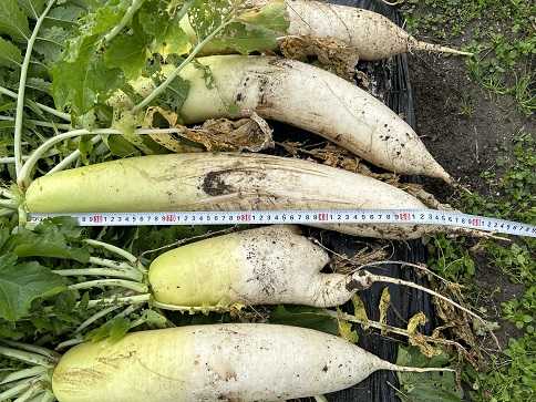 特に耐病総太りダイコンが長く、長さも60センチを超えています。