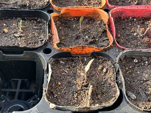 一番早くに発芽したプレミアムルビーです。6個入りの卵パックに2粒ずつ種を蒔いて、最終的に発芽したのは11ヵ所からで92%の高確率で発芽してくれました。