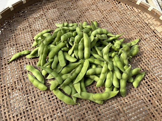 湯あがり娘の莢がプックリとしてきましたので、大きく育ったものだけを収穫。莢が小さなものは収穫せずに残しています。