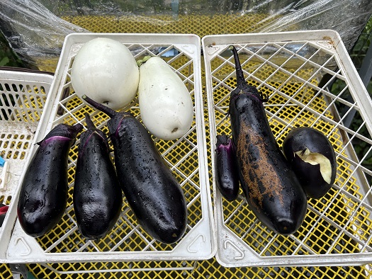 朝からジトジトと蒸し暑い日が続いておりますが、皆さんは体調などを壊されていないでしょうか?本日はナスビの収穫をしました。