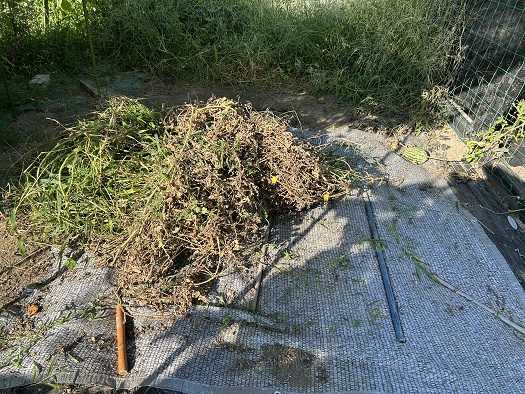 元気な蔓を残すので、荒っぽくすると切ってしまう恐れがあるので、そこは慎重に作業を・・・奥に雑草が残っていますが、完全に蔓が枯れた時に予定しています。