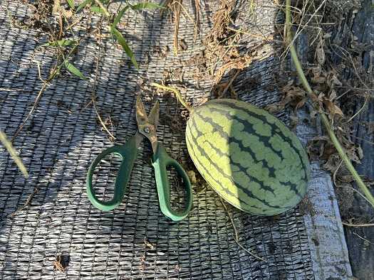 元気だったスイカの蔓が一気に枯れだし元気な蔓は数本のみとなりました。昨日、枯れた蔓と雑草の手入れをしました。