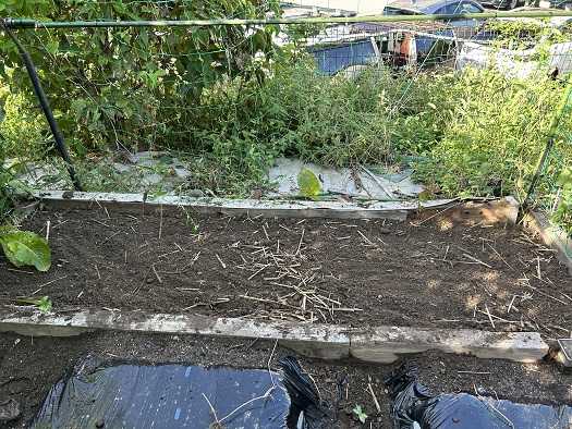 納豆菌を入れた木枠の耕運とナスビの収穫