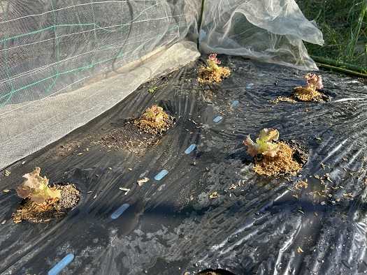 ポット上げをしていたサニーレタス5株、ポット上げをしてからあまり生長していないようなので、畑へ植付けることにしました。やはり地植えをすると根の張りが早いので生長も早くなってくれます。