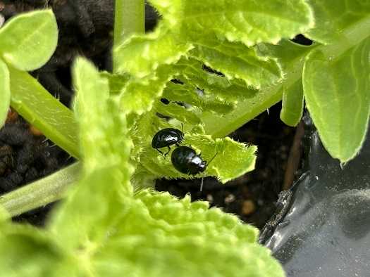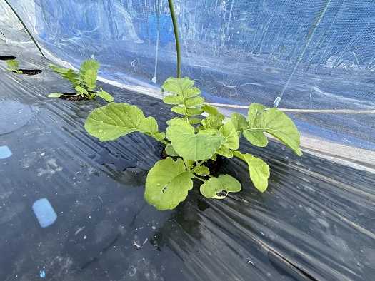 ただ、ダイコンの大敵であるダイコンハムシが・・・。ハムシがいたのは、この一株だけで、他の株には今のところいませんでしたので一安心。