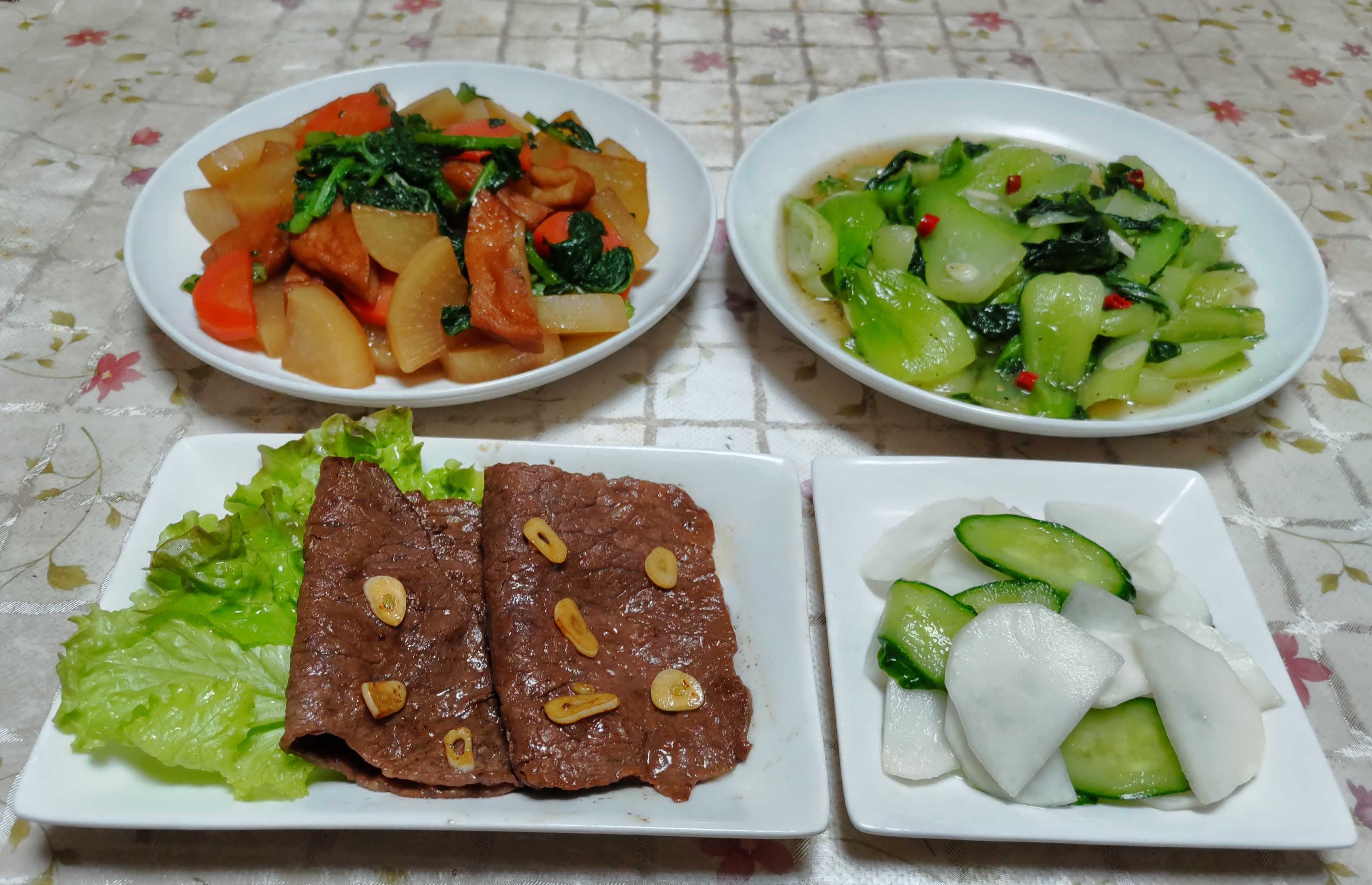 今日のごはん今日のごはんは牛もも肉の焼肉大根の煮物青梗菜の炒め物漬物牛もも肉の焼肉…
