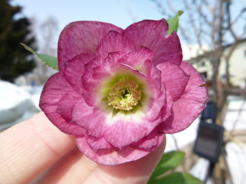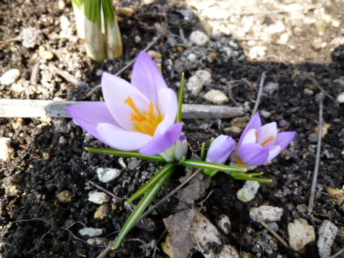 今朝は、イングリッシュローズ シャルロットの冬囲いを外し、カビている葉っぱ(葉がついたまま冬囲いしたので)を切った。近所の庭では、紫のクロッカスが咲いていた。今年初めて見たクロッカス。うちのクロッカスもよくみたら、紫の蕾が見えていた。札幌今日温度最高2度最低ー2度、あさっては最高7度になる予報。もう少しだな、クロッカス。クリスマスローズの見回り。緑で埋もれてて全然解らなかったけど、小さいキャワイコちゃんがいた。すっごいかわいいな~(●^o^●)これはオドルス?オルドス?の苗。いつ咲くのかな?クリスマスローズの原種名って興味ないと覚えられないよね。あ、でも自分で育てると覚えられる。ムルチフィダスとかリグリクスとか・・・呪文みたい(^-^)
