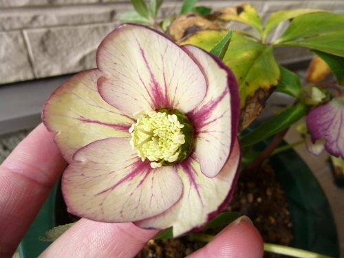 だんだんと開いてきたクリスマスローズ ゴールドフラッシュ 赤ピコ
