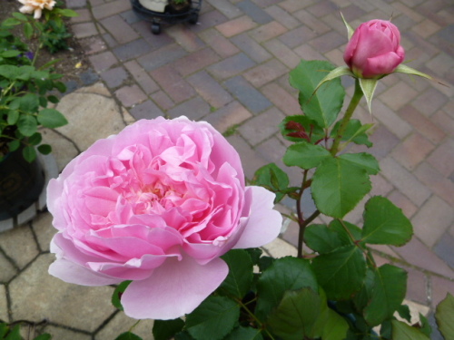 一番最初に咲いたのは、ウェッセルトン!!今年購入した さくらさくら次の開花予定、ピンクフラミンゴ蕾いっぱいの ジョセフィーヌ